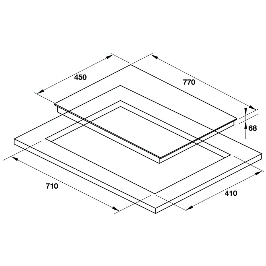 Kích thước lắp đặt: Ngang 710 x Sâu 410 mm
