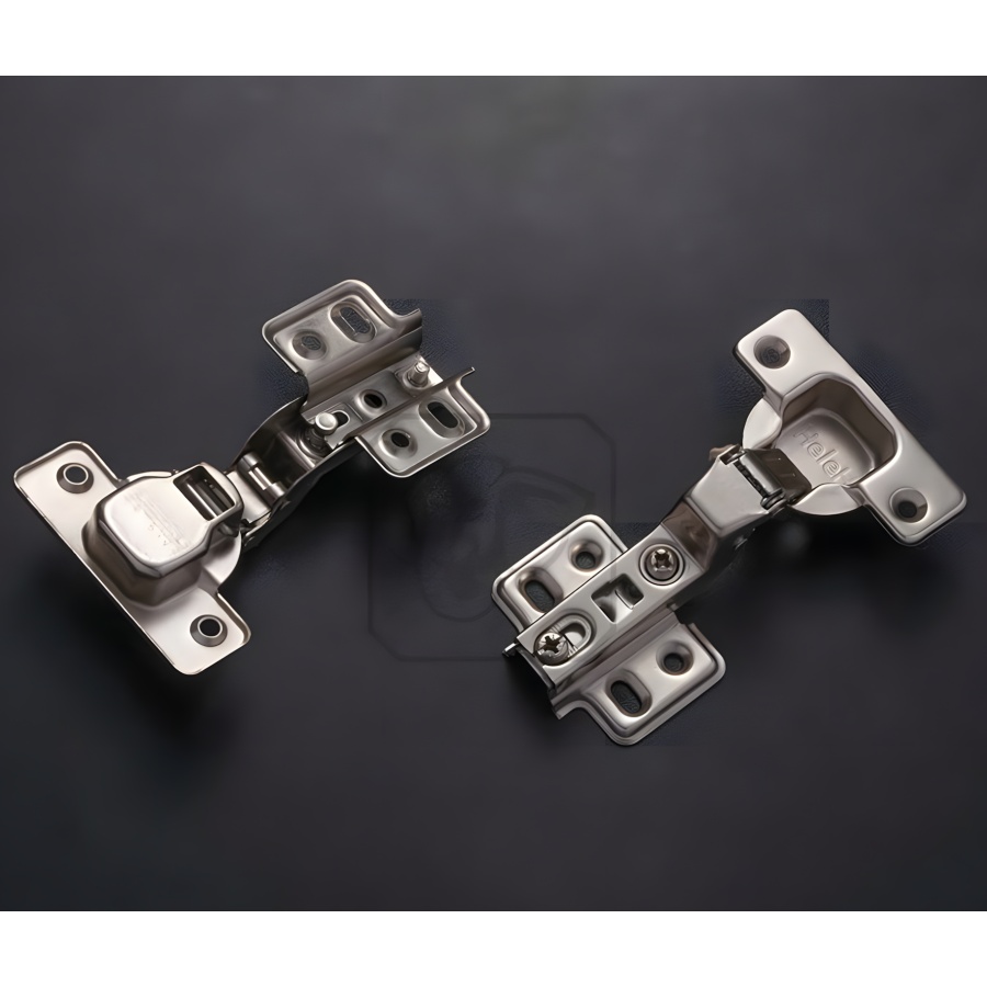Bản lề HeleH giảm chấn cong vừa giúp cửa đóng mở êm ái, giảm va đập, làm từ thép không gỉ bền bỉ, phù hợp cho tủ bếp và tủ gỗ cao cấp.