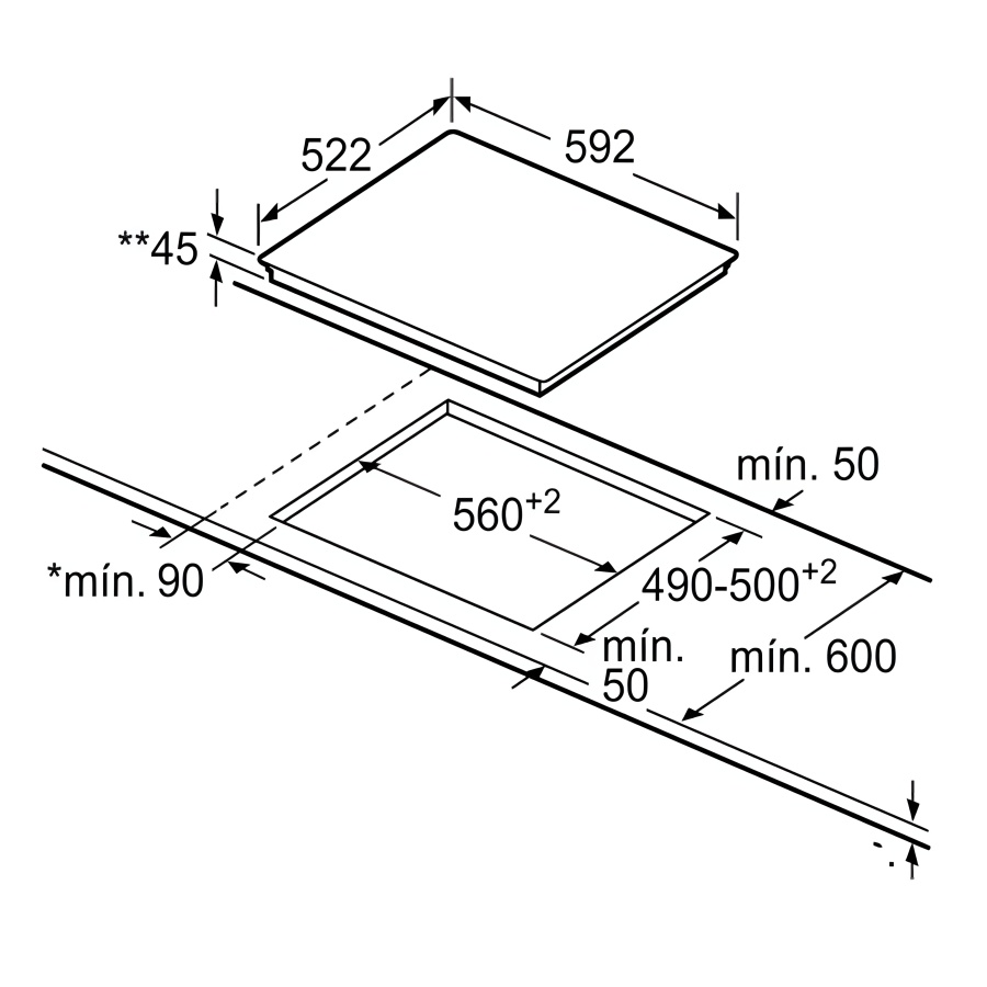 Bản vẽ bếp từ 3 vùng nấu Bosch PID631BB1E