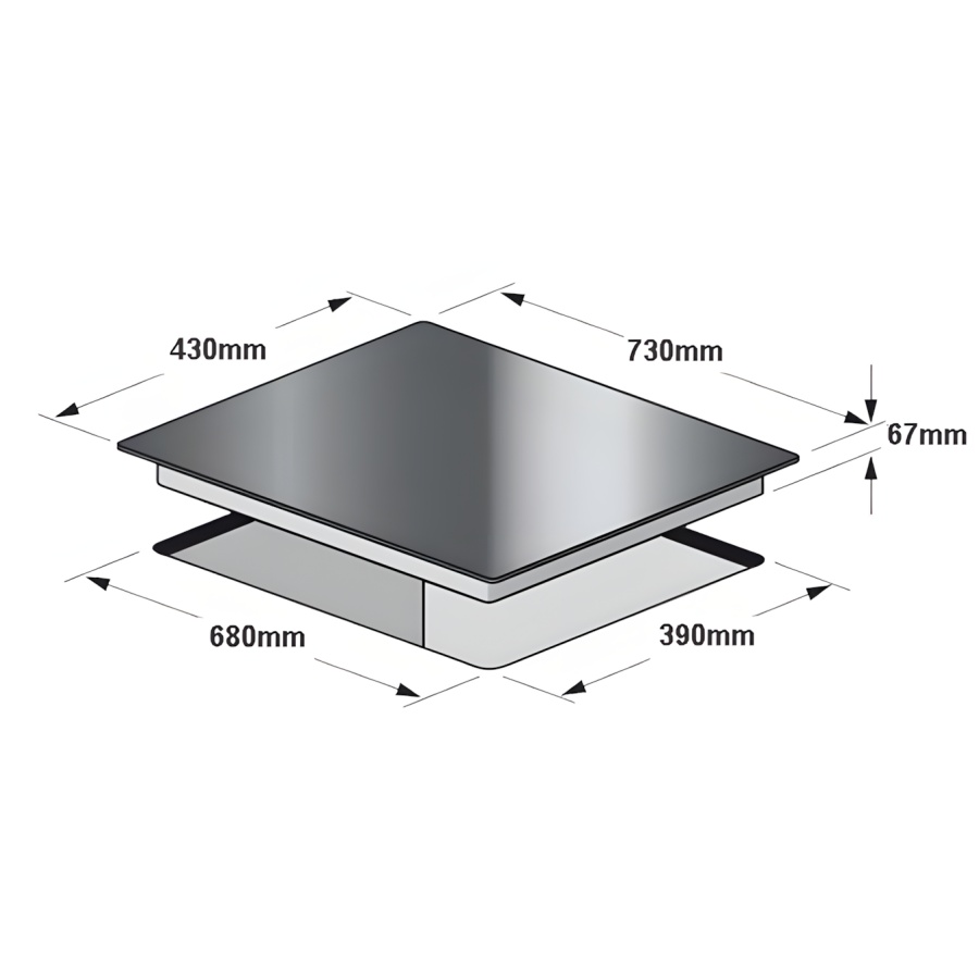 Lắp đặt: Lắp bếp vào lỗ đá với kích thước chính xác (680 x 390 mm) để đảm bảo an toàn và thẩm mỹ.