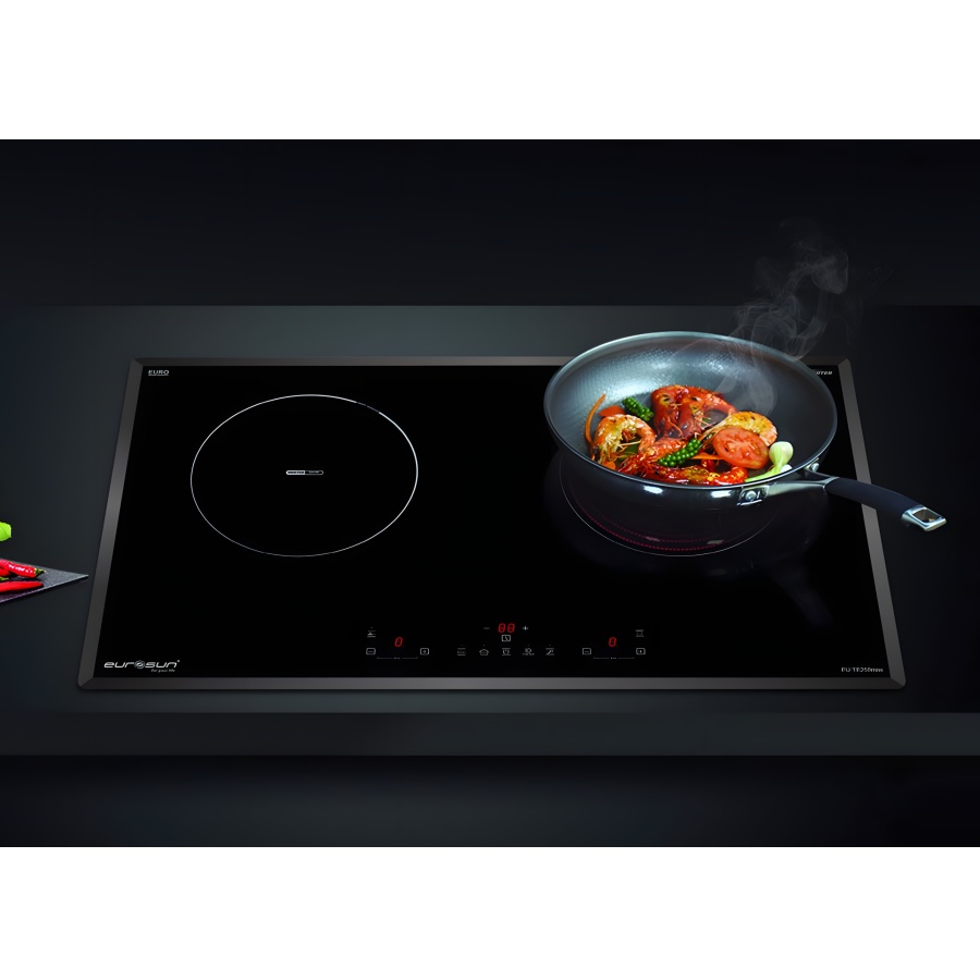 Bếp điện từ Eurosun EU-TE259Plus - 2 vùng nấu linh hoạt. Công nghệ Inverter tiết kiệm điện, nấu nhanh, an toàn với mặt kính Schott Ceran cao cấp.