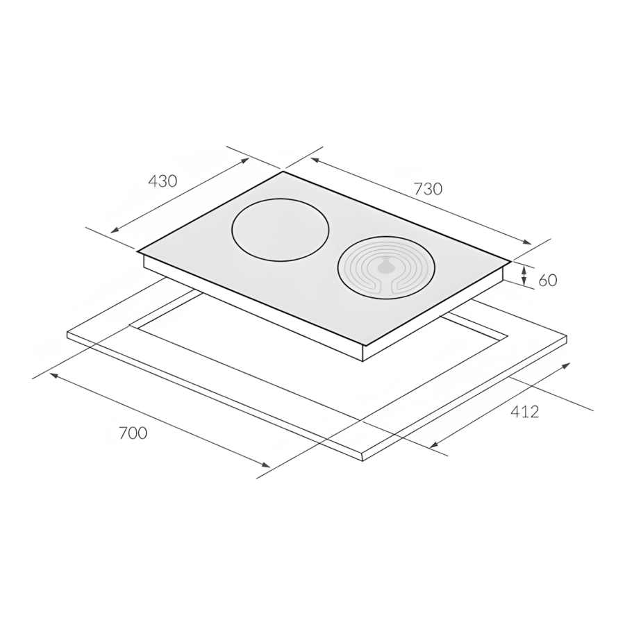 Lắp đặt: Lắp bếp vào lỗ đá với kích thước chính xác (700 x 412 mm) để đảm bảo an toàn và thẩm mỹ.