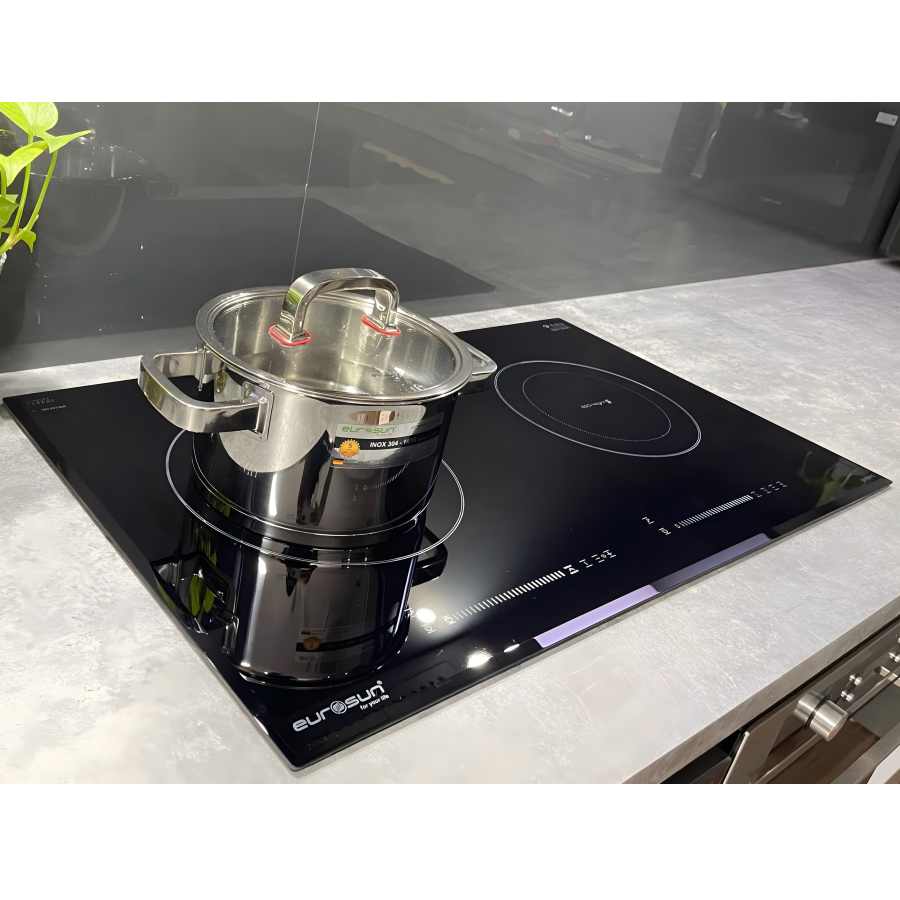 Bếp điện từ Eurosun EU-TE316 - 3 vùng nấu, công nghệ Inverter tiết kiệm điện. Thiết kế sang trọng, nấu nhanh, an toàn với mặt kính Schott Ceran cao cấp.