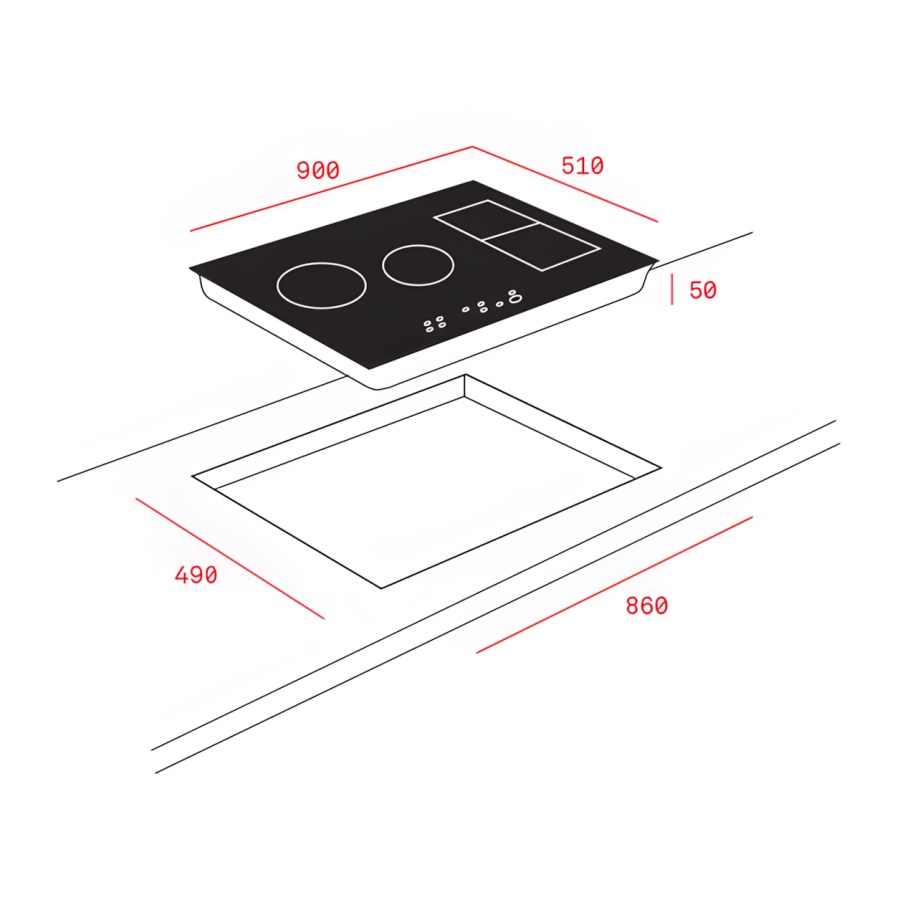Bếp kính âm 3 từ Mặt kính Vitroceramic – màu đen Điều khiển cảm ứng Màn hình hiển thị LED....
