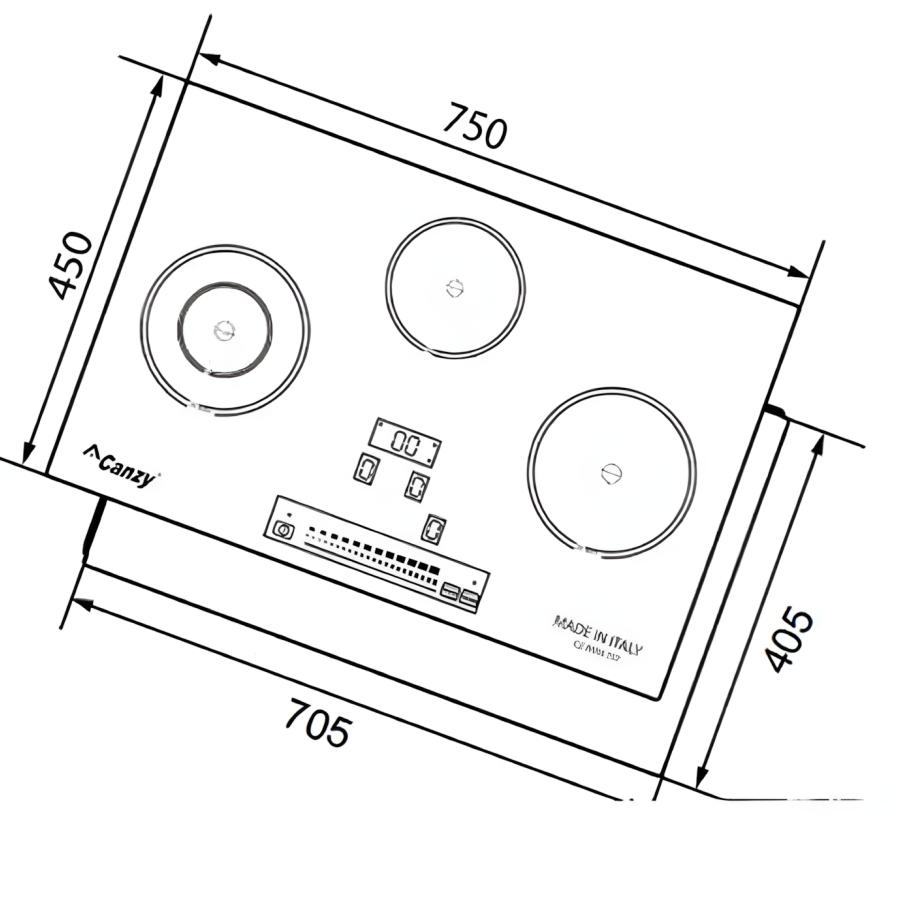 Bản vẽ Bếp hồng ngoại điện từ ba Canzy CZ-BMIX75T