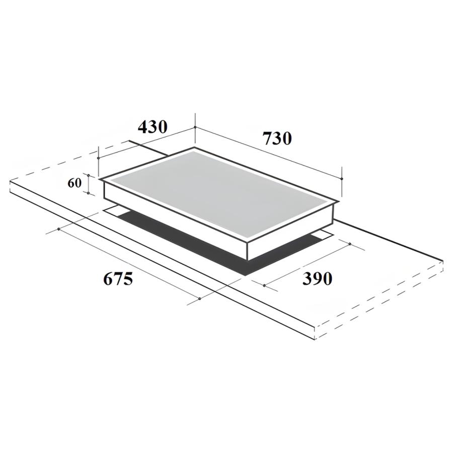Kích thước khoét đá: 675 x 390 mm