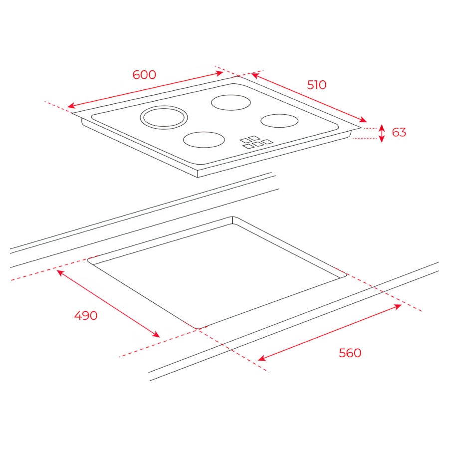 Bản vẽ Bếp Hồng Ngoại Teka TT 6315 40239031 3 Mặt Bếp