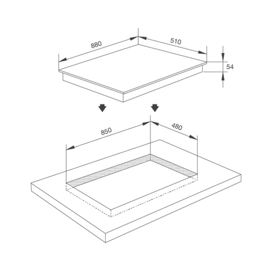 Kích thước bếp: R880 x S510 x C54mm