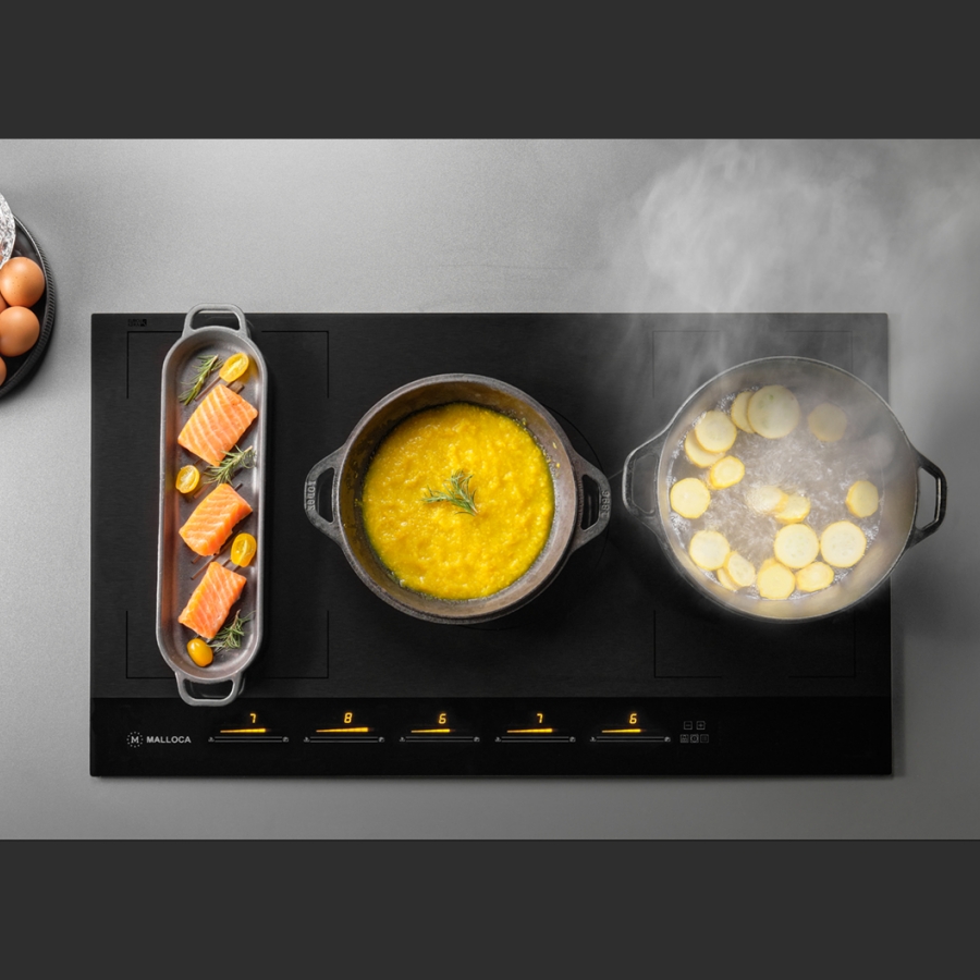 Đa dạng vùng nấu: Bếp có 5 vùng nấu từ, cho phép bạn nấu nhiều món cùng lúc. Các vùng nấu có kích thước và công suất khác nhau, phù hợp với nhiều loại nồi, chảo.