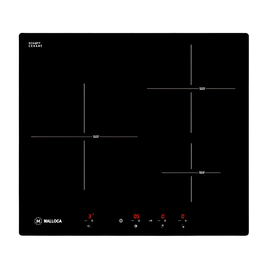 Bếp từ Malloca MH-03I - 3 vùng nấu, công suất mạnh mẽ, mặt kính Schott Ceran chịu nhiệt, tích hợp nhiều tính năng thông minh.