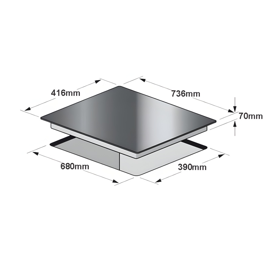Kích thước bề mặt: 736 x 416 x 70 mm