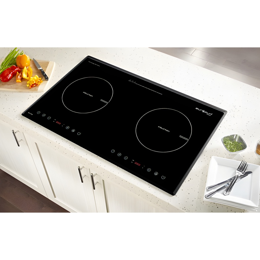Sử dụng: Đặt nồi đúng vùng nấu. Dùng bảng điều khiển cảm ứng để chọn mức công suất phù hợp.
