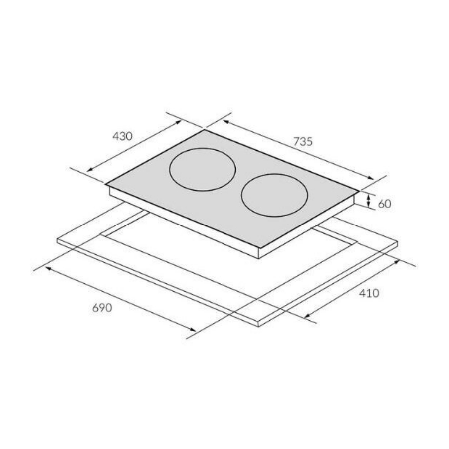 Bản vẽ Bếp Từ Eurosun EU-T265S 2 Vùng Nấu
