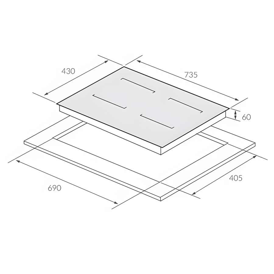Lắp đặt: Lắp bếp vào lỗ đá với kích thước chính xác (690 x 410 mm) để đảm bảo an toàn và thẩm mỹ.