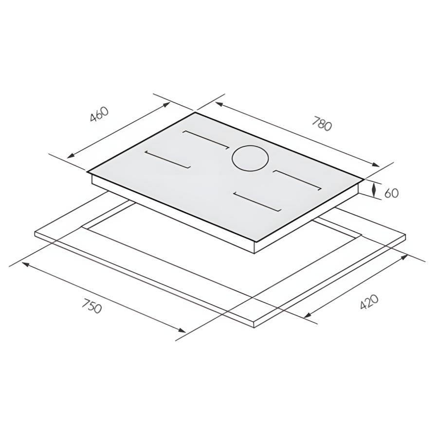 Loại bếp: Bếp từ 3 vùng nấu, lắp âm