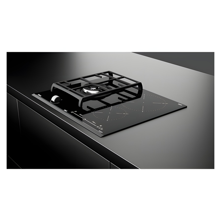 Điều khiển tiện lợi: Bếp từ được điều khiển bằng cảm ứng trượt, dễ dàng điều chỉnh nhiệt độ chính xác. Vùng gas sử dụng nút vặn truyền thống với 9 mức điều khiển lửa, mang lại sự quen thuộc và dễ sử dụng.