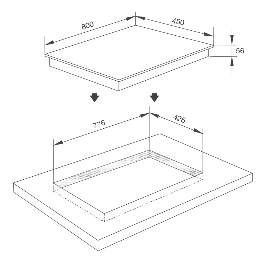 Kích thước bếp: W800 x D450 x H56mm
