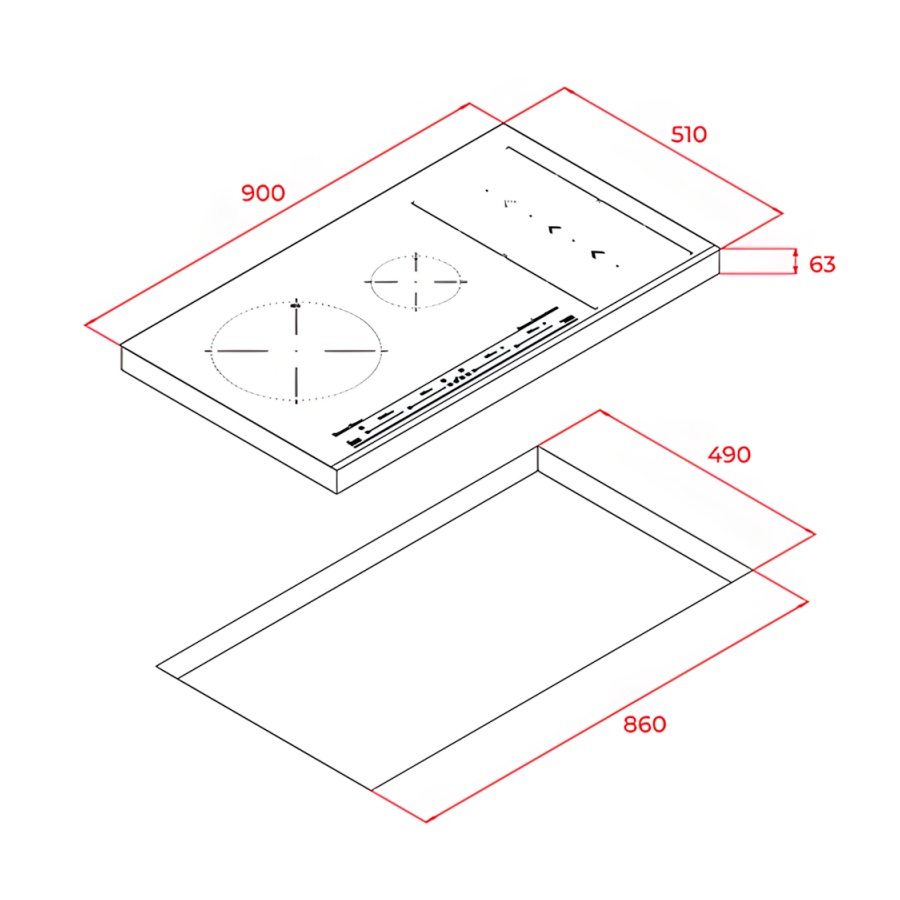 Bản vẽ Bếp Từ Teka IZS 96600 112500004 5 Vùng Nấu Cảm Ứng Trượt