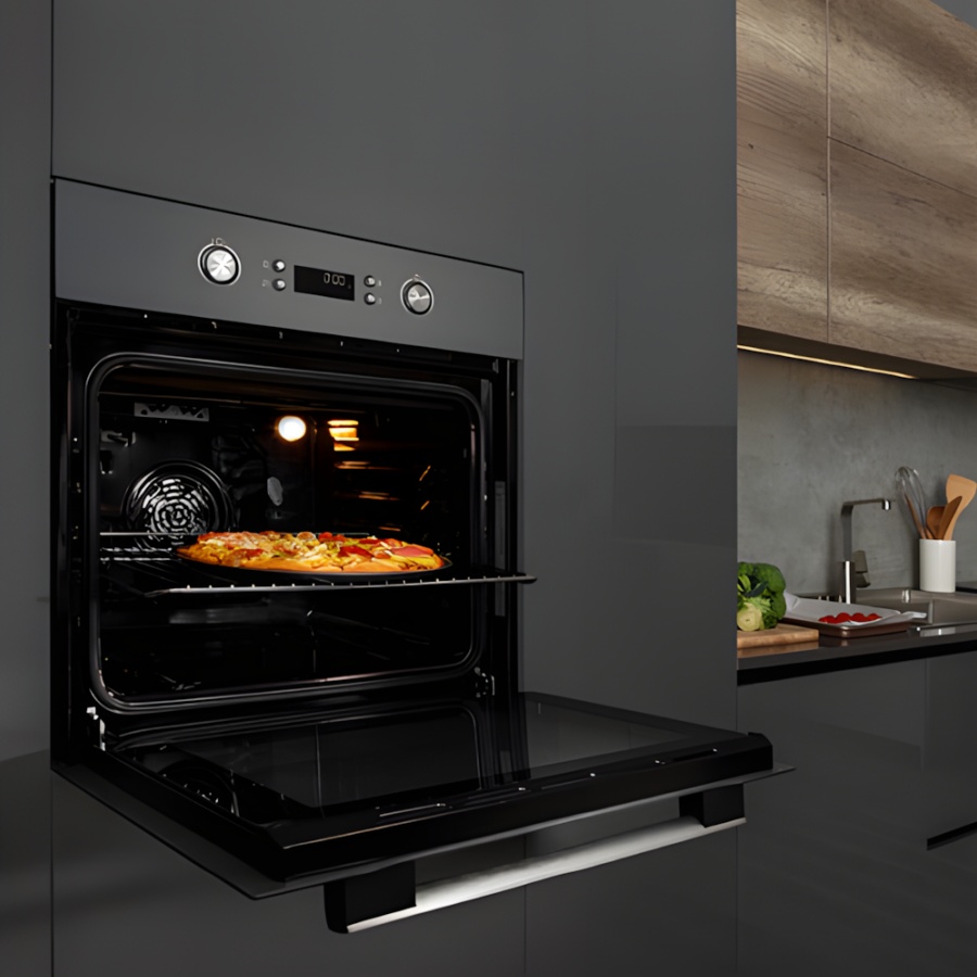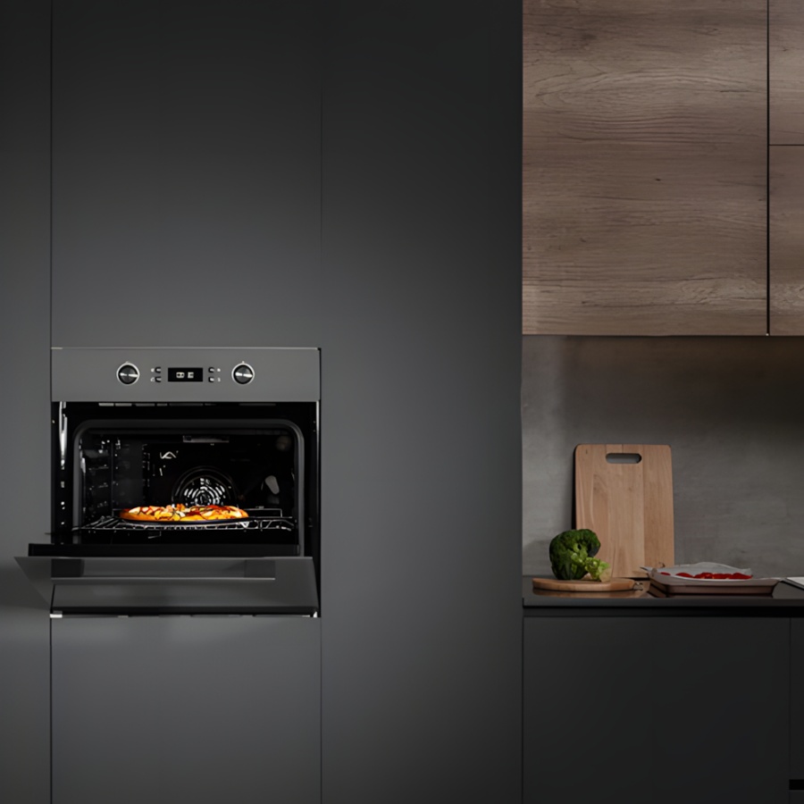 Thiết kế hiện đại, sang trọng: Lò có thiết kế lắp đặt âm tủ với mặt kính đen tinh tế, tạo nên vẻ ngoài sang trọng, liền mạch cho căn bếp hiện đại.