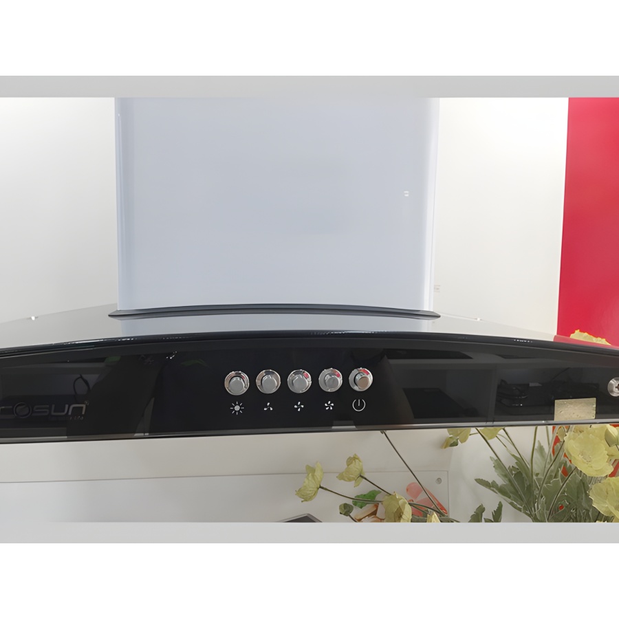 Máy hút khói Eurosun EH-90K06 - thiết kế gắn tường kính cong hiện đại. Công suất hút mạnh mẽ 1000m³/h, độ ồn thấp, bảng điều khiển cảm ứng. Lựa chọn hi...