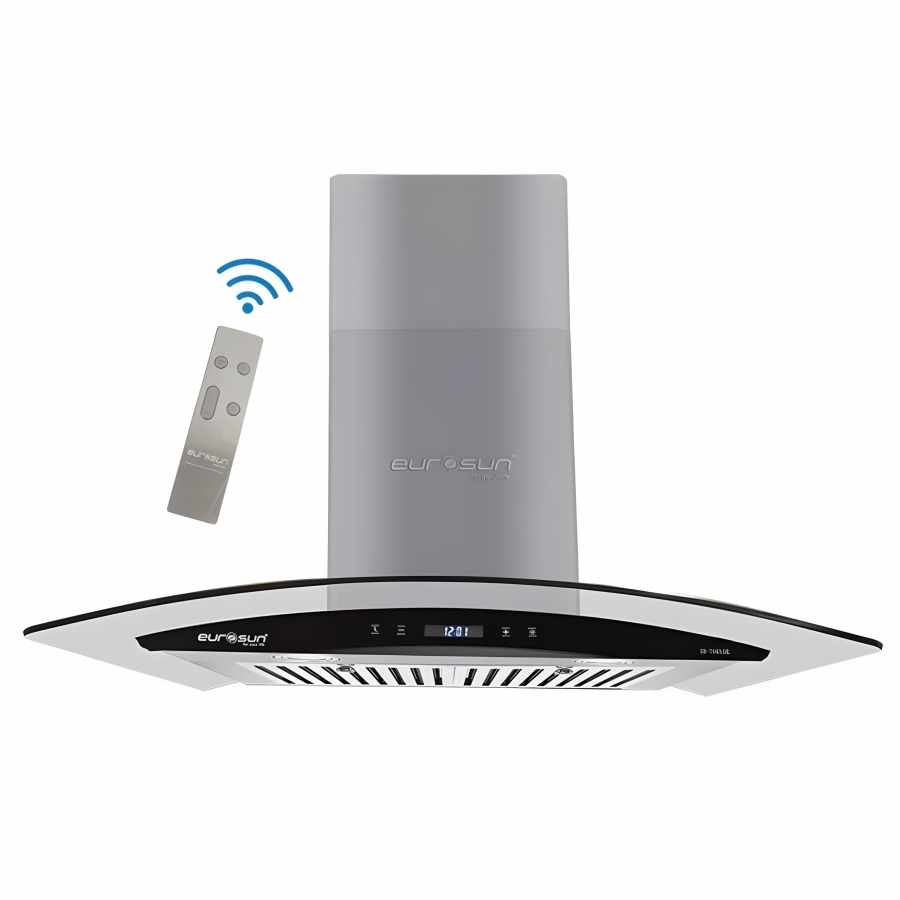 Thiết kế gắn tường sang trọng: Máy hút mùi Eurosun EH-70K15E được lắp đặt áp tường, phù hợp với nhiều loại bếp. Thân máy bằng Inox kết hợp kính cong cường lực 6mm tạo nên vẻ ngoài thanh lịch và dễ dàng vệ sinh.