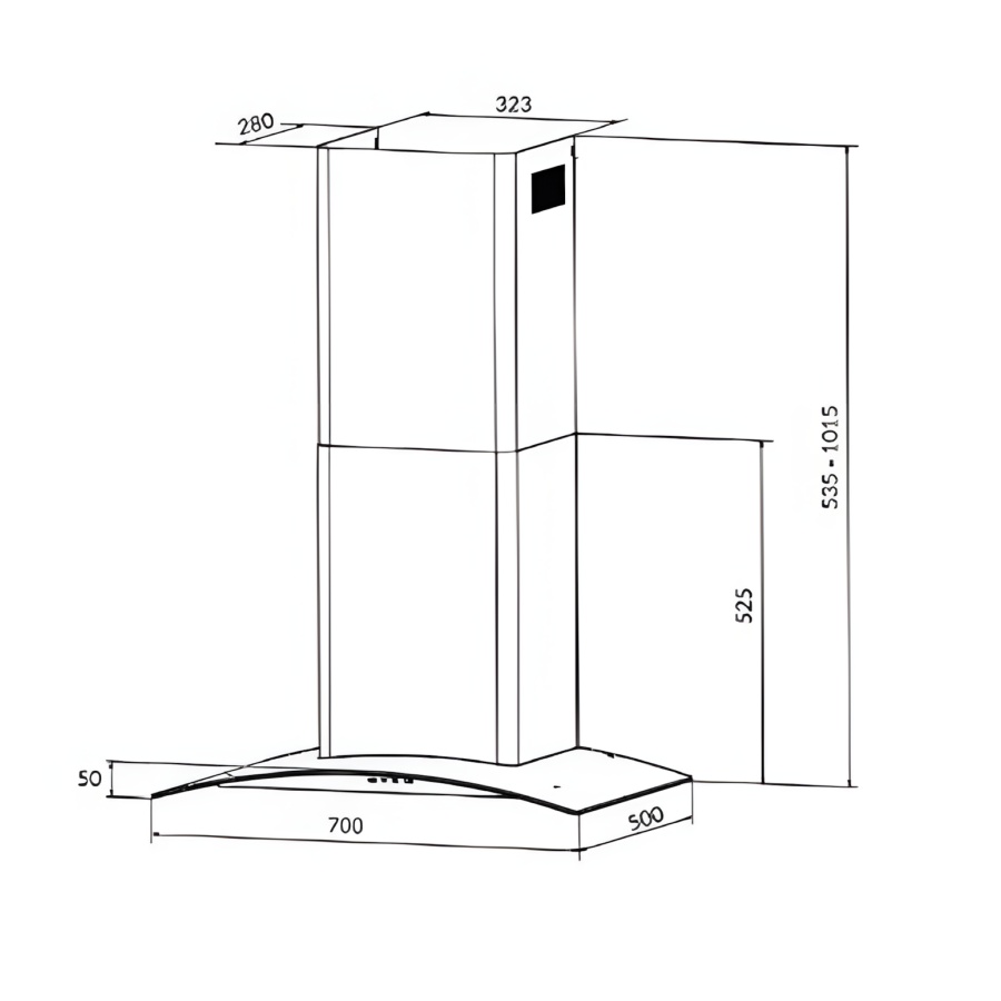 Bản vẽ Máy Hút Khói Khử Mùi Eurosun EH-70K26S Gắn Tường