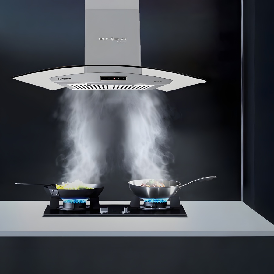 Máy hút khói Eurosun EH-90K10 - thiết kế gắn tường kính cong hiện đại, công suất hút mạnh mẽ 1000 m3/h. Vận hành êm ái, độ ồn thấp, bảng điều khiển cảm ...