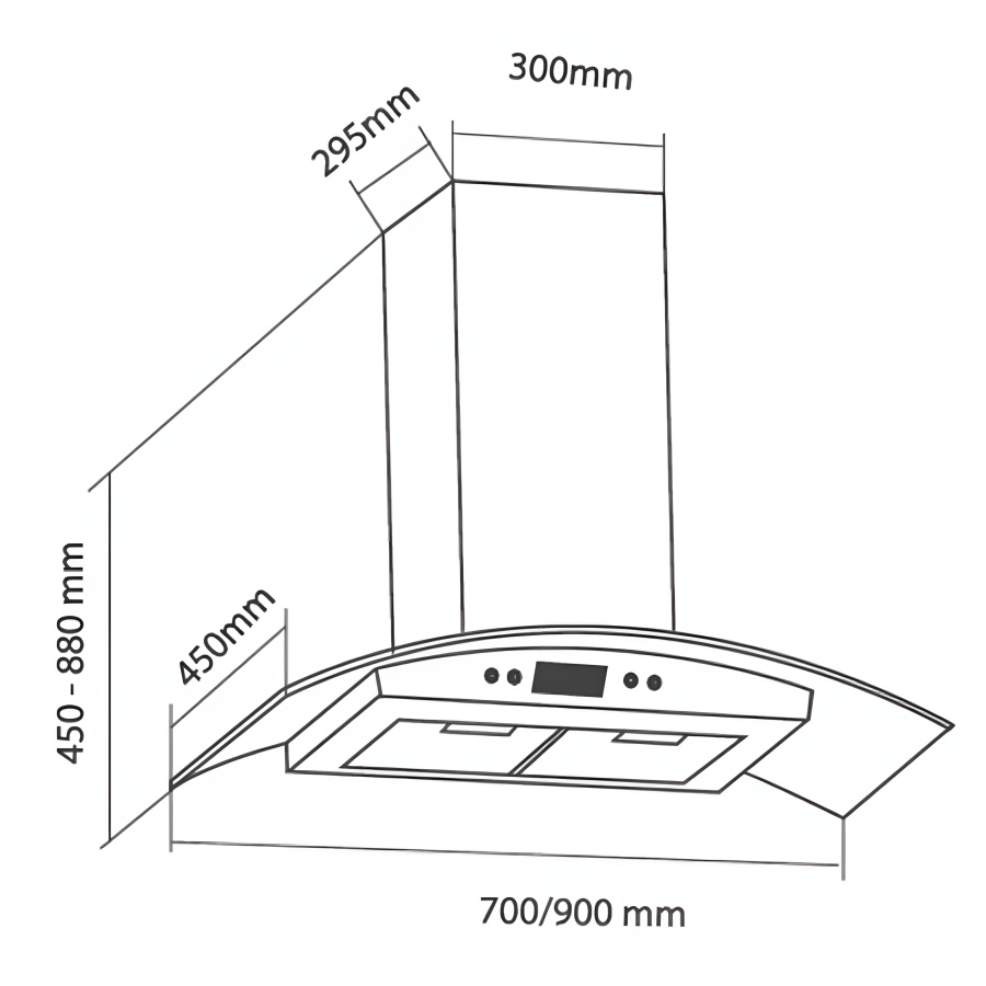 Sử dụng: Vận hành máy bằng cách nhấn các phím điện tử để chọn tốc độ hút phù hợp với lượng khói và mùi trong bếp.