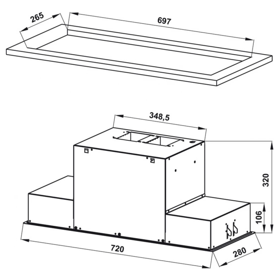 Bản vẽ Máy Hút Khói Khử Mùi Hafele HH-BI72A 533.80.027 Âm Tủ Tiết Kiệm Điện