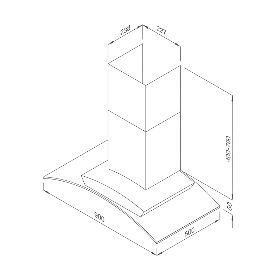 Bản vẽ Máy Hút Khói Khử Mùi Malloca MC 1090 Áp Tường