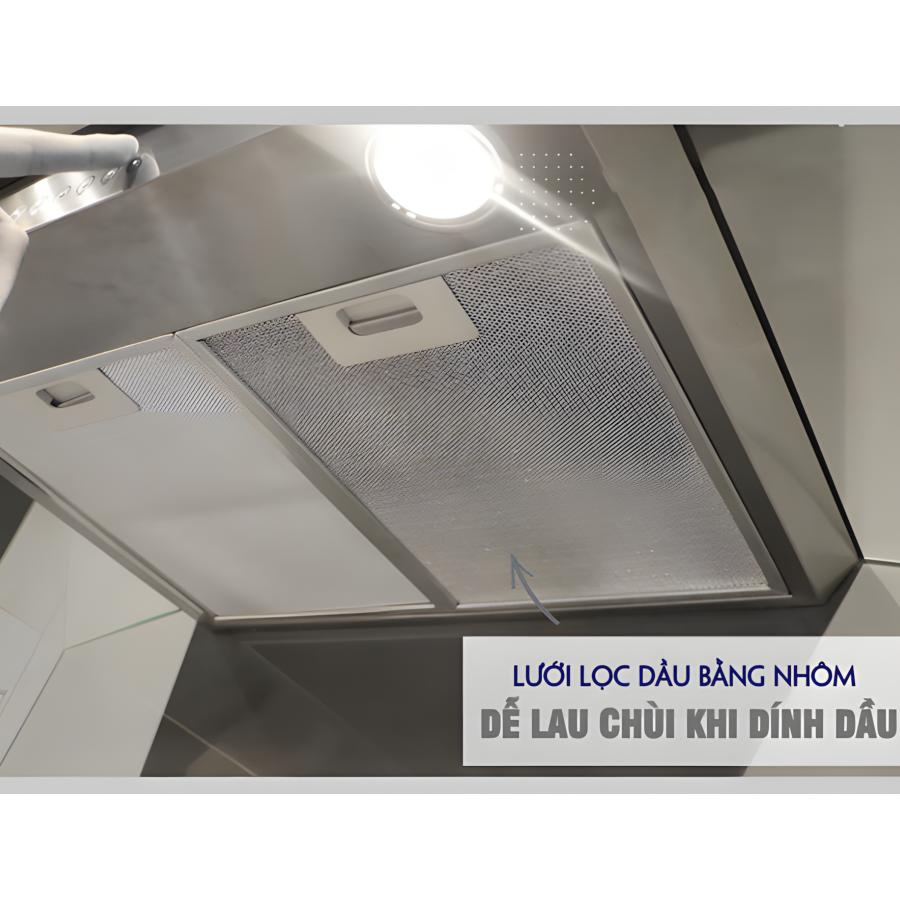 Dễ dàng vệ sinh: Tấm lưới lọc bằng nhôm có thể tháo rời và vệ sinh dễ dàng, giúp duy trì hiệu suất hút tối ưu. Bếp có thể khử mùi bằng than hoạt tính hoặc ống thoát khí.