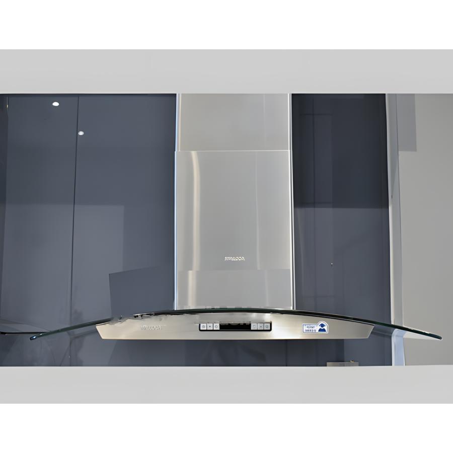 Máy hút mùi áp tường Malloca CIRCEO-K9998 - thiết kế kính cong độc đáo và sang trọng. Công suất hút mạnh mẽ 1000m³/h, độ ồn thấp, bảng điều khiển cảm ứng...