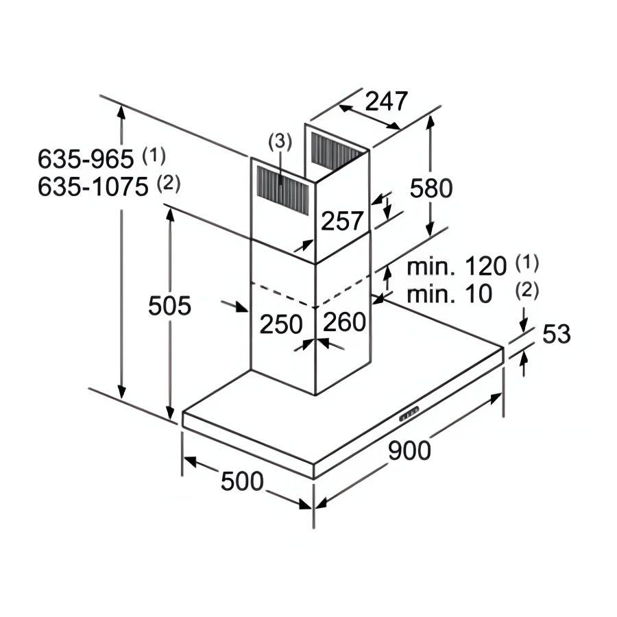 Bản vẽ Máy Hút Mùi Bosch DWB97IM50 Gắn Tường Serie 4