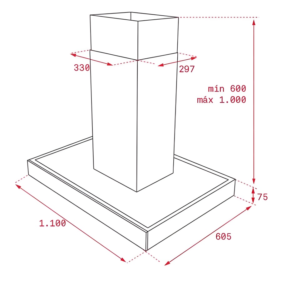 Công suất hút: Tối đa 629 m³/h, Tối thiểu 331 m³/h