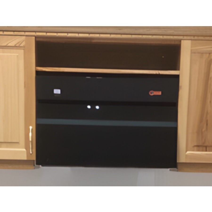 Thiết kế Kính Nghiêng Sang trọng: Kiểu dáng kính nghiêng áp tường độc đáo. Mặt kính cường lực dày 6mm tráng men bóng cao cấp tạo nên vẻ đẹp sang trọng và huyền bí cho không gian bếp (màu đen). Thân máy bằng sơn tĩnh điện bền bỉ.