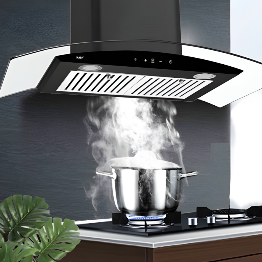 Máy hút mùi Kaff KF-AT70H/AT90H kính vát: Công suất 1000m³/h+. Thiết kế kính đen sang trọng, vận hành cảm ứng. Khử mùi hiệu quả, tiết kiệm không gian.