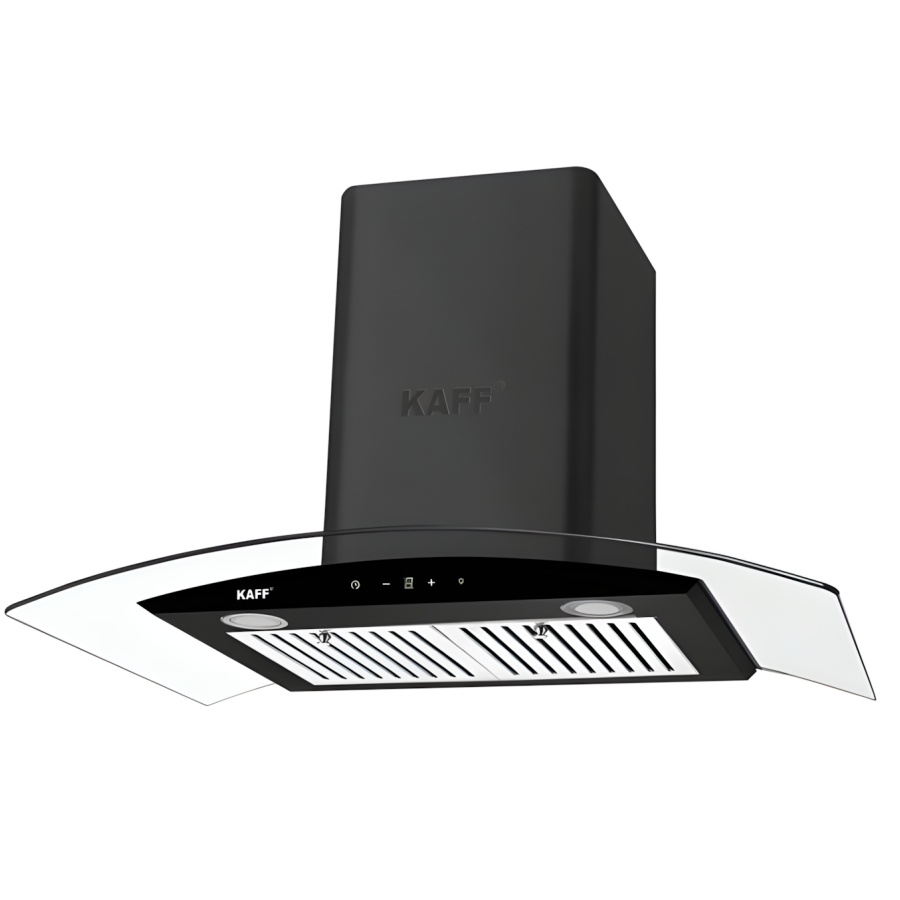 Máy hút mùi Kaff KF-AT70H/AT90H kính vát: Công suất 1000m³/h+. Thiết kế kính đen sang trọng, vận hành cảm ứng. Khử mùi hiệu quả, tiết kiệm không gian.