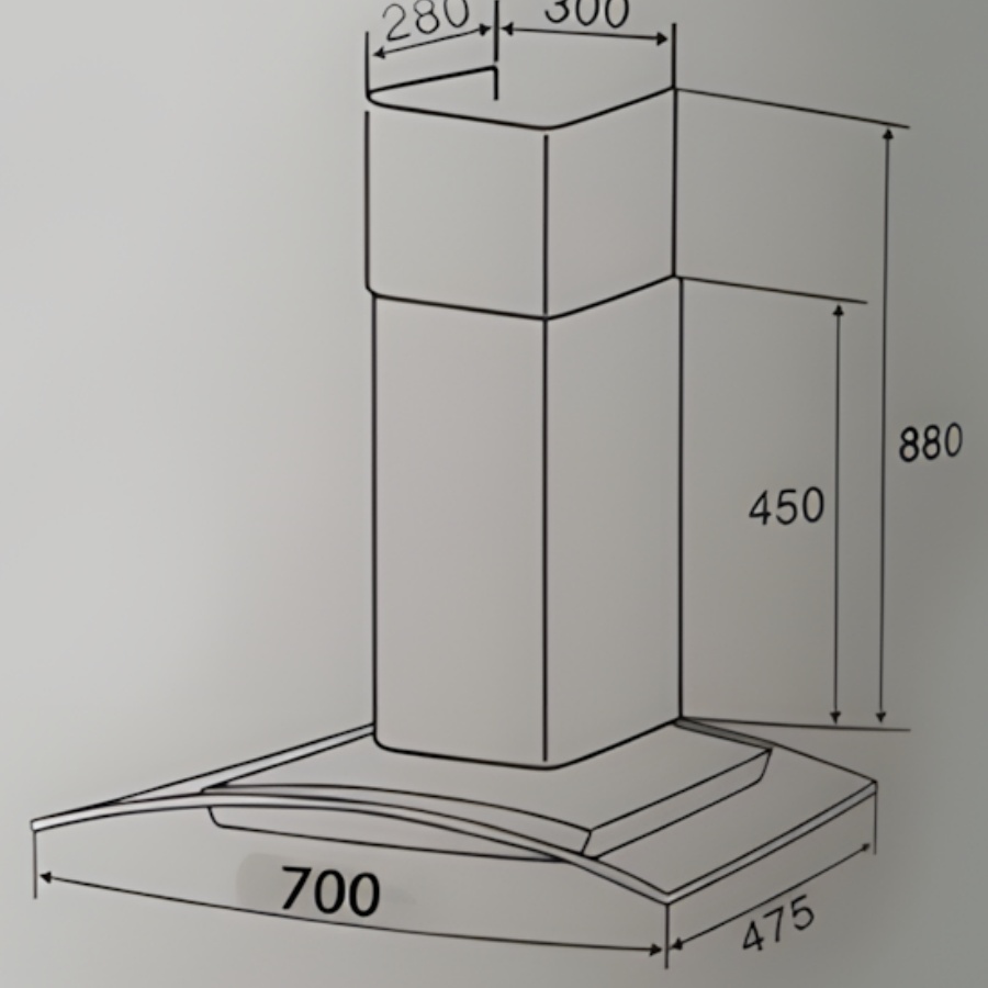 Thiết kế Kính Cong Cao cấp: Thân máy làm từ Inox cao cấp, tăng vẻ đẹp và độ bền. Tấm kính cường lực dạng cong dày 8mm tăng tính thẩm mỹ và khả năng hút khói.