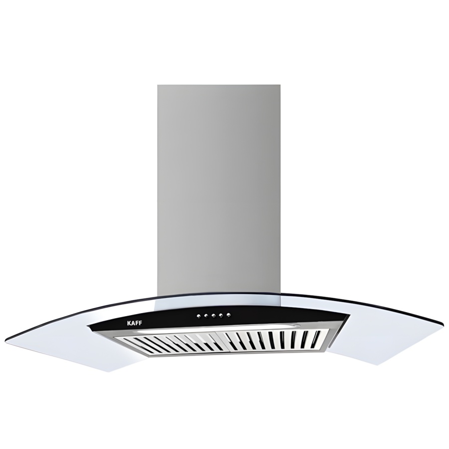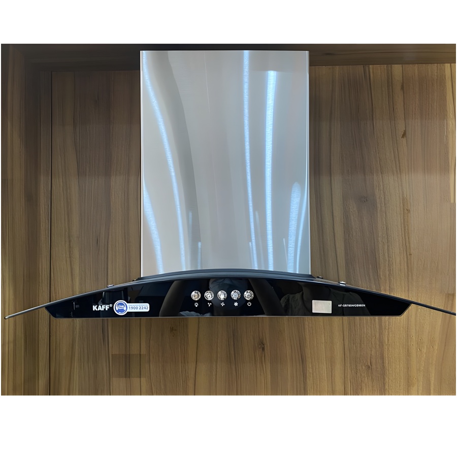 Máy hút mùi Kaff AT90LH kính vát 90cm: Thiết kế kính đen sang trọng, công suất 1200m³/h. Vận hành êm ái, điều khiển cảm ứng. Khử mùi hiệu quả.