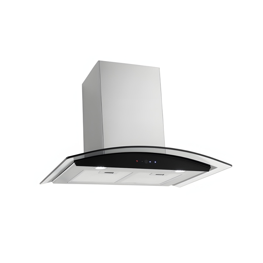 Máy hút mùi Kaff AT90LH kính vát 90cm: Thiết kế kính đen sang trọng, công suất 1200m³/h. Vận hành êm ái, điều khiển cảm ứng. Khử mùi hiệu quả.