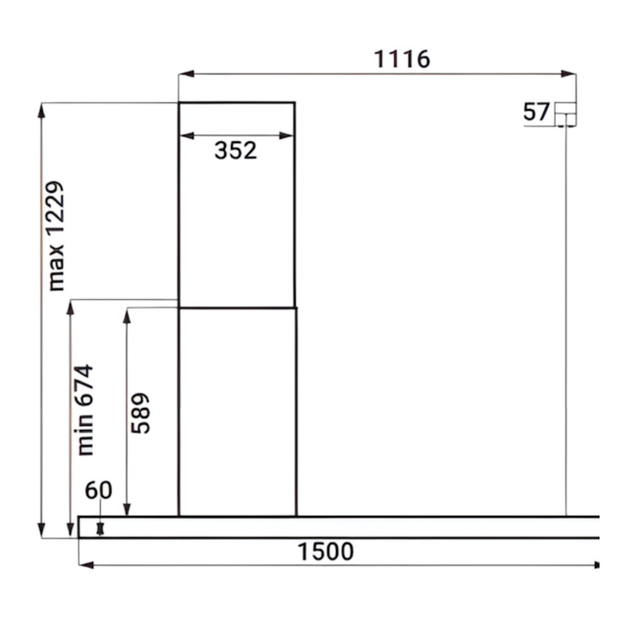 Kích thước (RxSxC): 1500 x 60 x 589 mm (Rộng x Sâu x Cao)