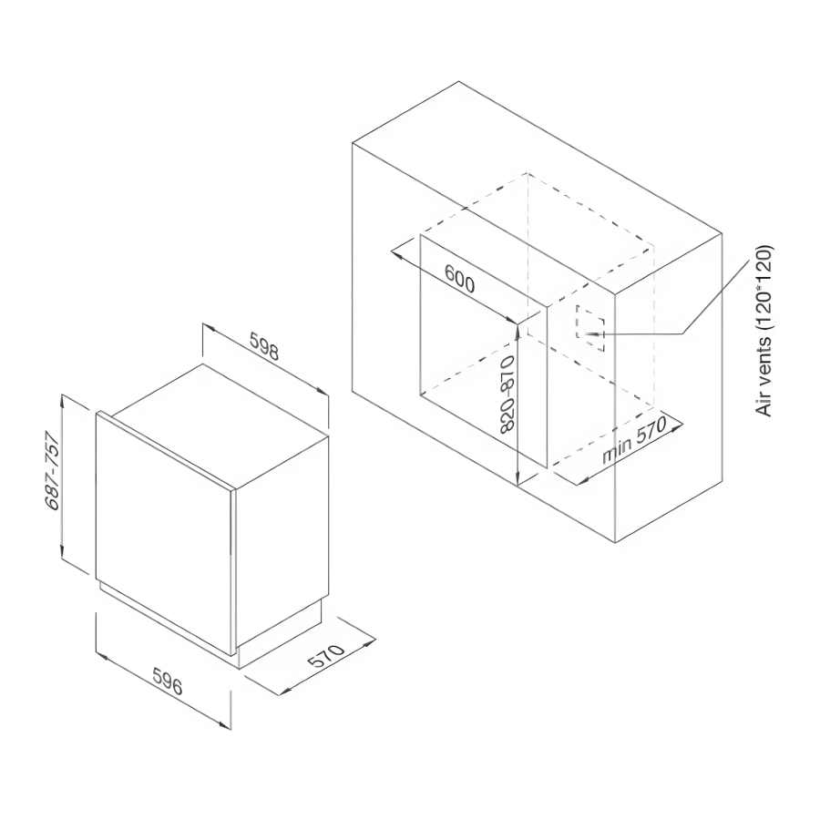 Bản vẽ Máy Rửa Chén Malloca MDW14-B09FI Âm Tủ