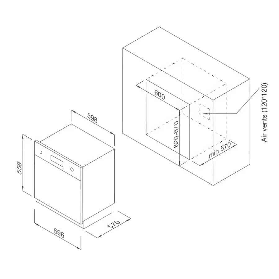 Kích thước (Rộng x Sâu x Cao): W598 x D570 x H820mm