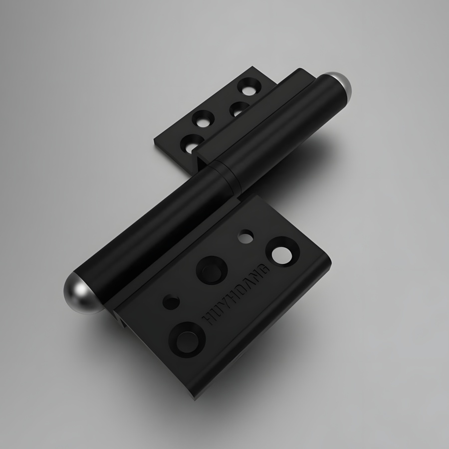 Bản lề 4D Huy Hoàng hệ Châu Âu: Hợp kim Nhôm 6063-T5, Sơn Đen. Chỉnh 4 chiều, chốt Inox, chống xệ cánh. Dùng cho cửa nhôm hệ 55/Xingfa. Thiết kế hiện đại.