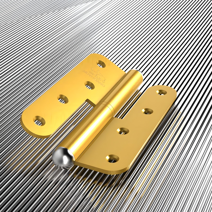 Vật liệu và Lớp phủ: Bản lề được sản xuất bằng vật liệu tôn thép dày 3.2 mm, được phủ một lớp sơn tĩnh điện với màu Zi Vàng (Vàng điện phân), giúp chống gỉ sét và tăng tính thẩm mỹ.