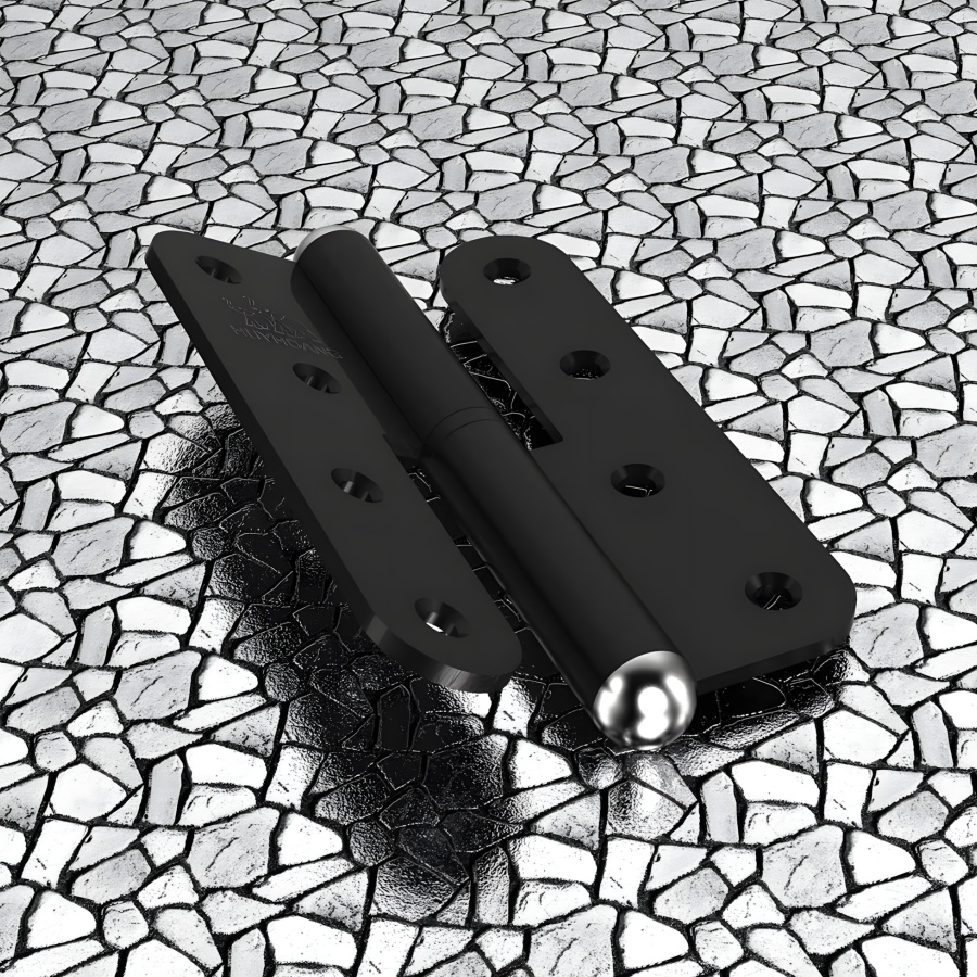 Vật liệu và Lớp phủ: Bản lề được sản xuất bằng vật liệu tôn thép dày $2.8 \text{ mm}$, được phủ một lớp sơn tĩnh điện màu đen (suy luận từ tên sản phẩm), giúp chống gỉ sét và tăng tính thẩm mỹ.