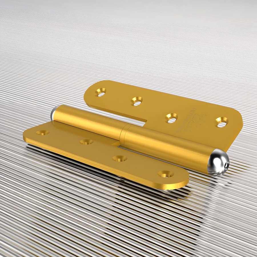 Vật liệu Chắc chắn: Bản lề được sản xuất bằng vật liệu tôn thép dày 3.5 mm, được phủ một lớp sơn tĩnh điện cao cấp với màu Zi Vàng (Vàng điện phân), giúp chống gỉ sét và tăng tính thẩm mỹ.
