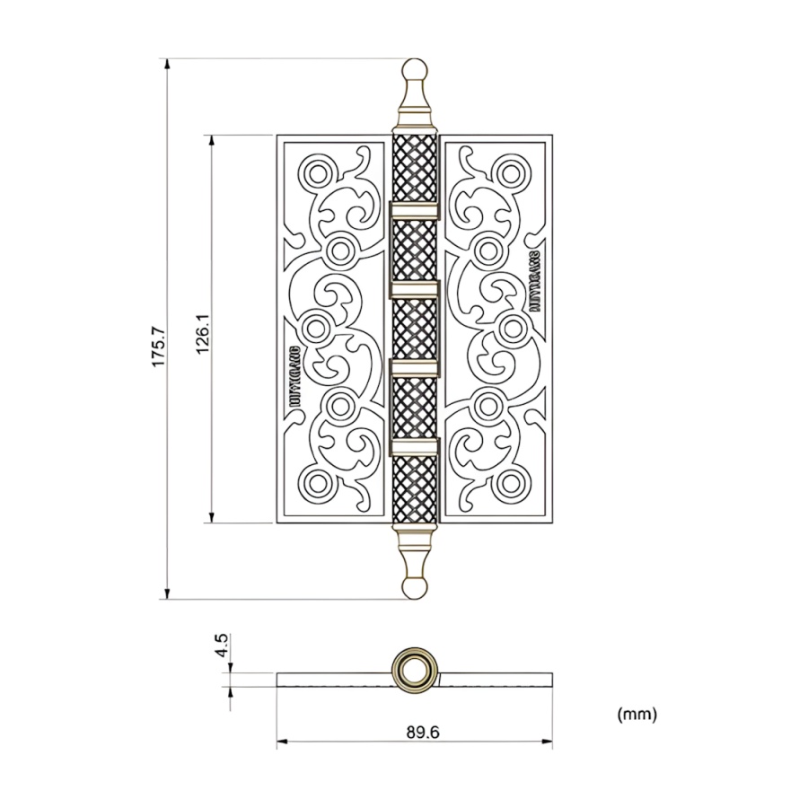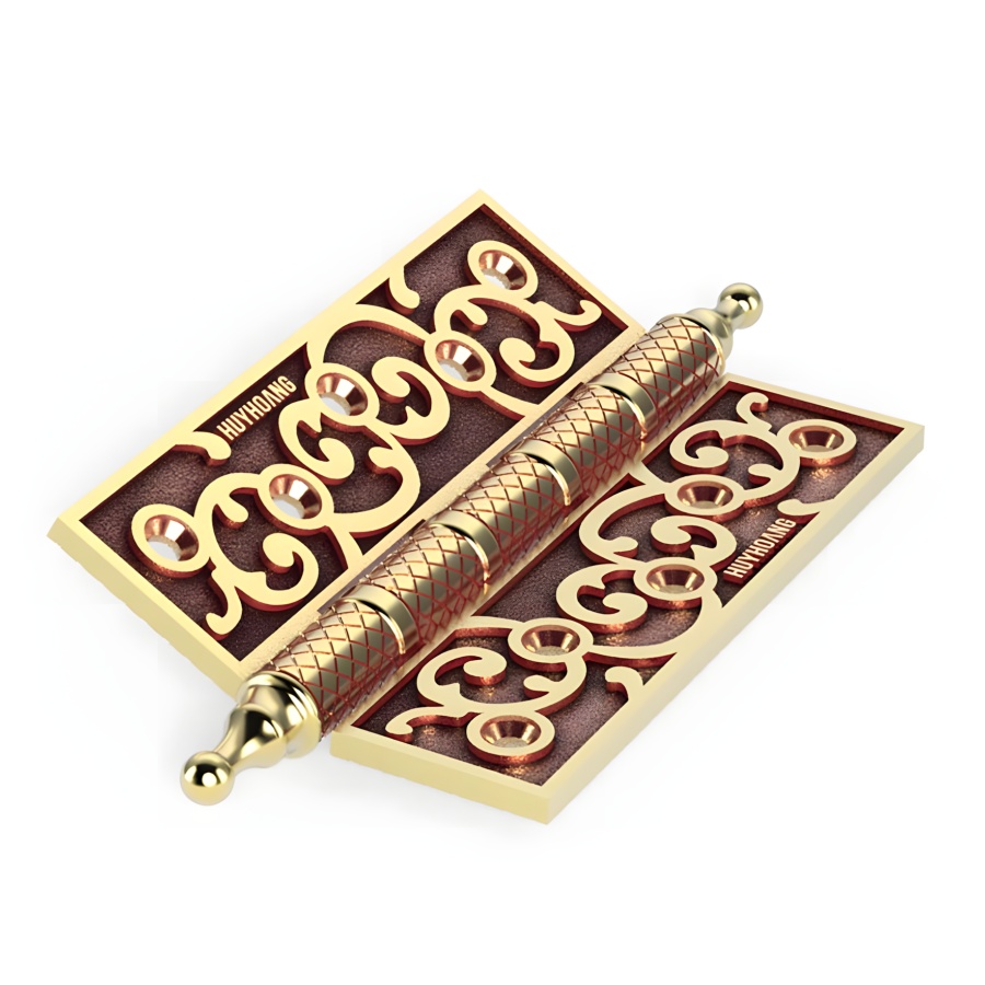 Thiết kế Thẩm mỹ: Bản lề có hoa văn được đúc nổi tinh xảo, tăng tính thẩm mỹ và sự sang trọng, cổ điển cho cửa gỗ cao cấp.