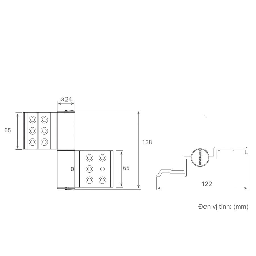 Bản lề Huy Hoàng 2D dài 2 cánh hệ xingfa Điện Zi Titan
