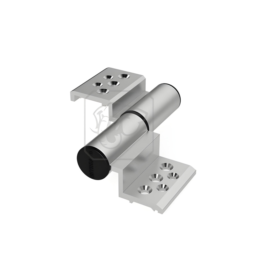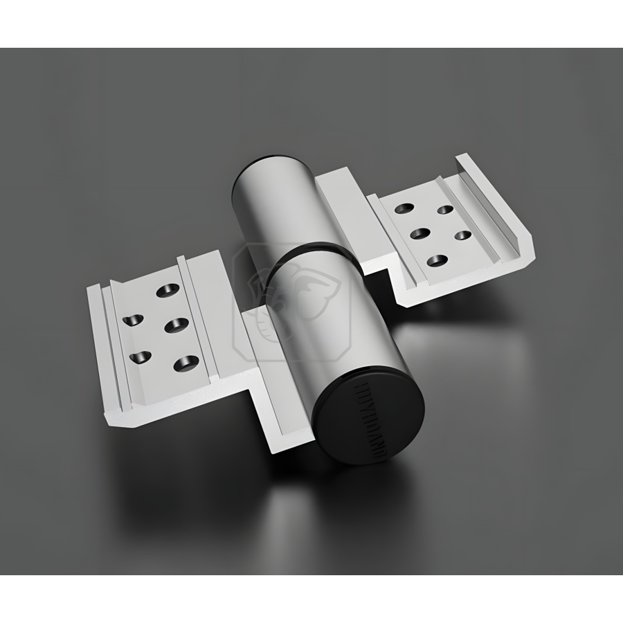 Chất liệu: Nhôm (Thân bản lề), Inox (Chốt bản lề, Đế bắt vít).